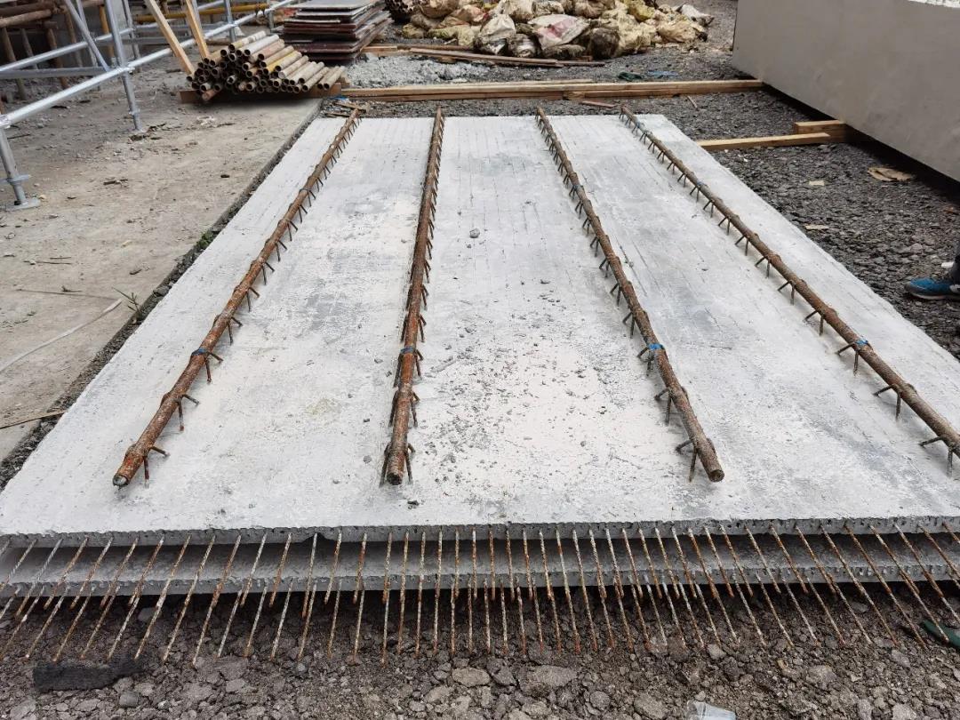 PK板最小厚度35mm,疊合后115mm~125mm左右;PK板的鋼管桁架上弦桿采用鋼管灌注微膨脹高強砂漿,腹桿采用HPB300級直徑6mm鋼筋。