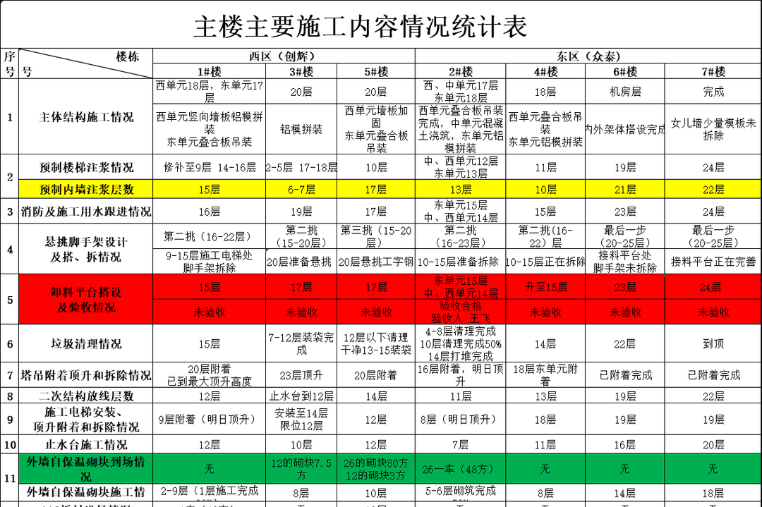 形成主樓主要施工內(nèi)容情況統(tǒng)計(jì)表