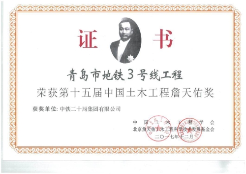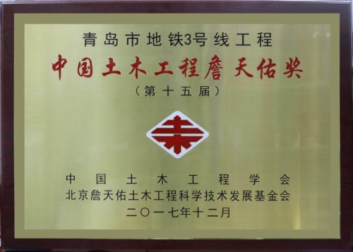 公司參建的青島地鐵3號(hào)線獲第十五屆中國(guó)土木工程詹天佑獎(jiǎng)