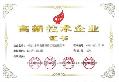 國(guó)家高新技術(shù)企業(yè)證書(shū)